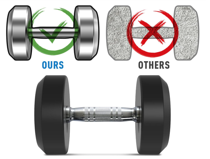 - تصميم ذكي - مصنوع من قلب من الحديد الزهر الصلب لقوة يمكن الاعتماد عليها. لا يضمن الطلاء المطاطي المتانة فحسب، بل يجعل التنظيف سهلاً مع تقليل ضوضاء التمرين. لن تضر هذه الدمبل الأرضيات أو المعدات. توفر المقابض المخرشة بالكامل قبضة آمنة ومريحة، بغض النظر عن الوزن.
